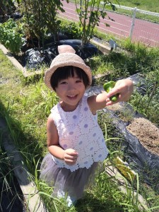 自己紹介のあとはみんなでコミュニティファームに出て野菜を植えました